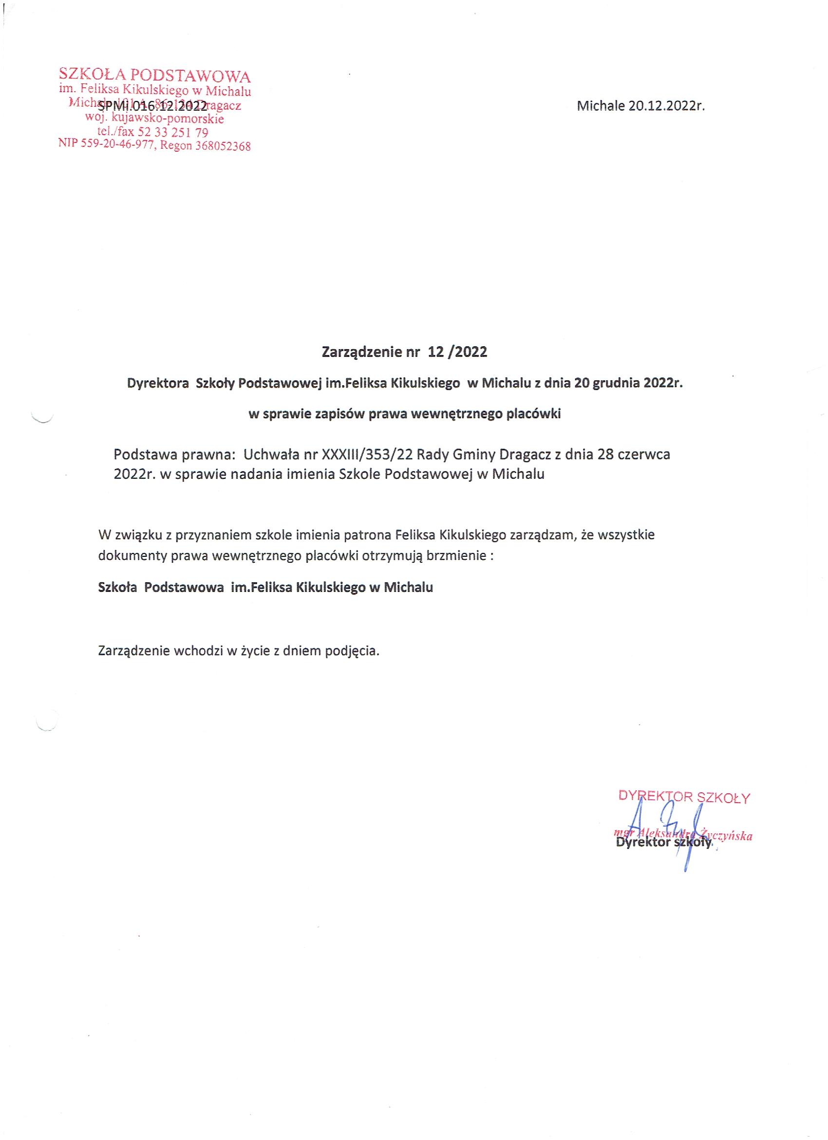 Aleksandra Życzyńska) - Dodanie załącznika [zarzadzenie_nr_12_001.jpg] do dokumentu. (Dokument nieopublikowany)