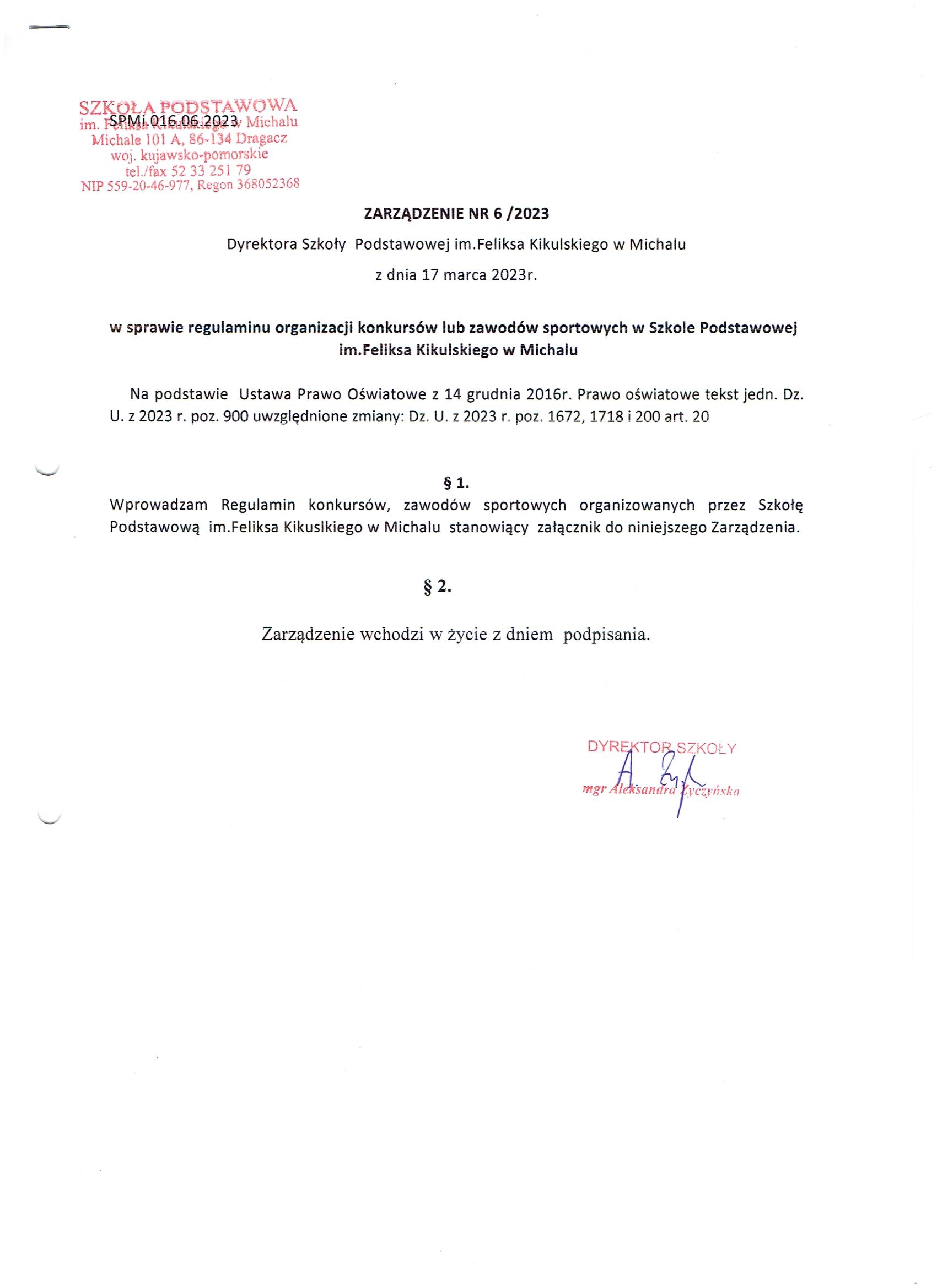Aleksandra Życzyńska) - Dodanie załącznika [zarzadzenie_nr_6_001.jpg] do dokumentu. (Dokument nieopublikowany)