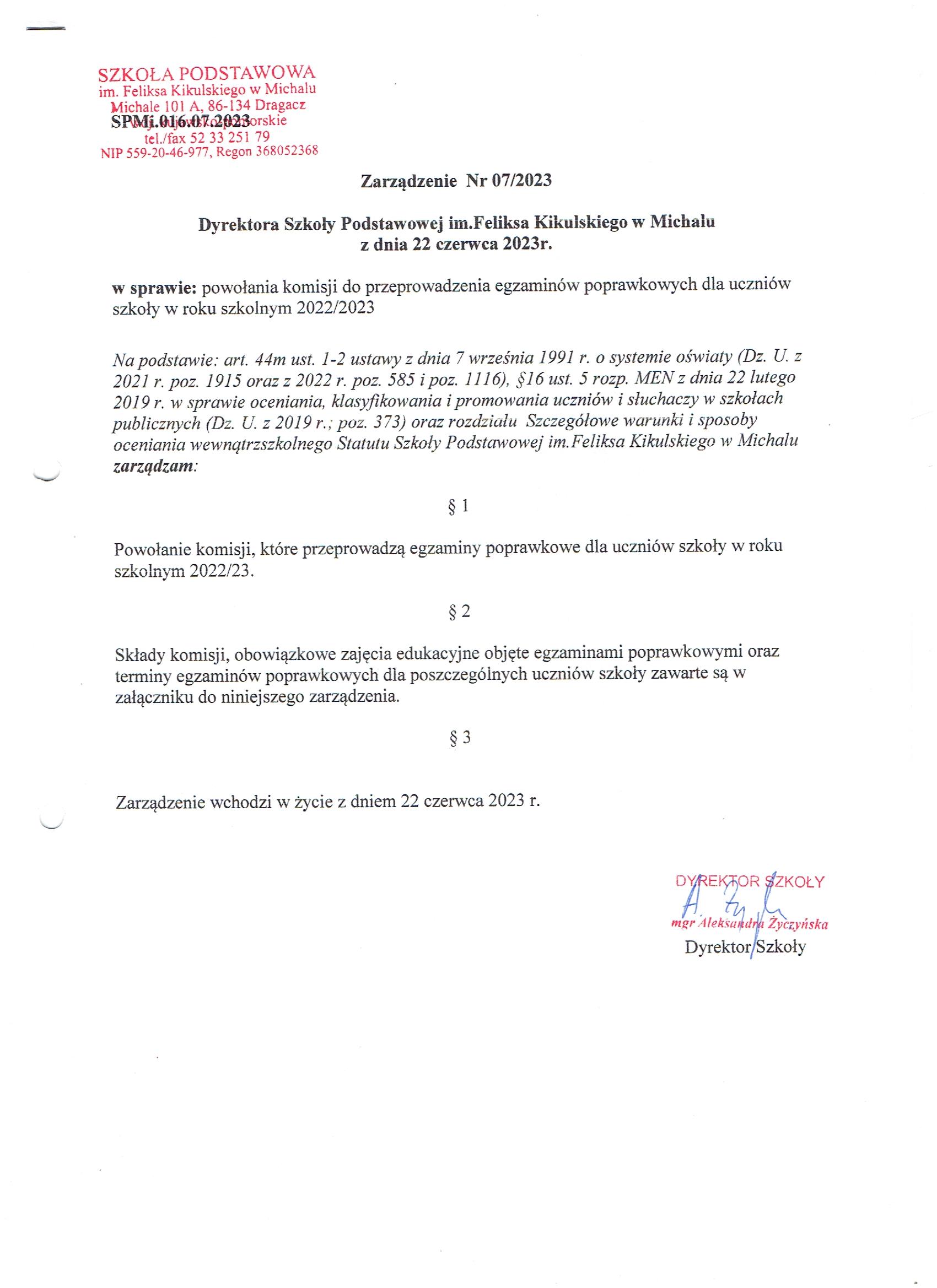 Aleksandra Życzyńska) - Dodanie załącznika [zarzadzenie_nr_7_001.jpg] do dokumentu. (Dokument nieopublikowany)