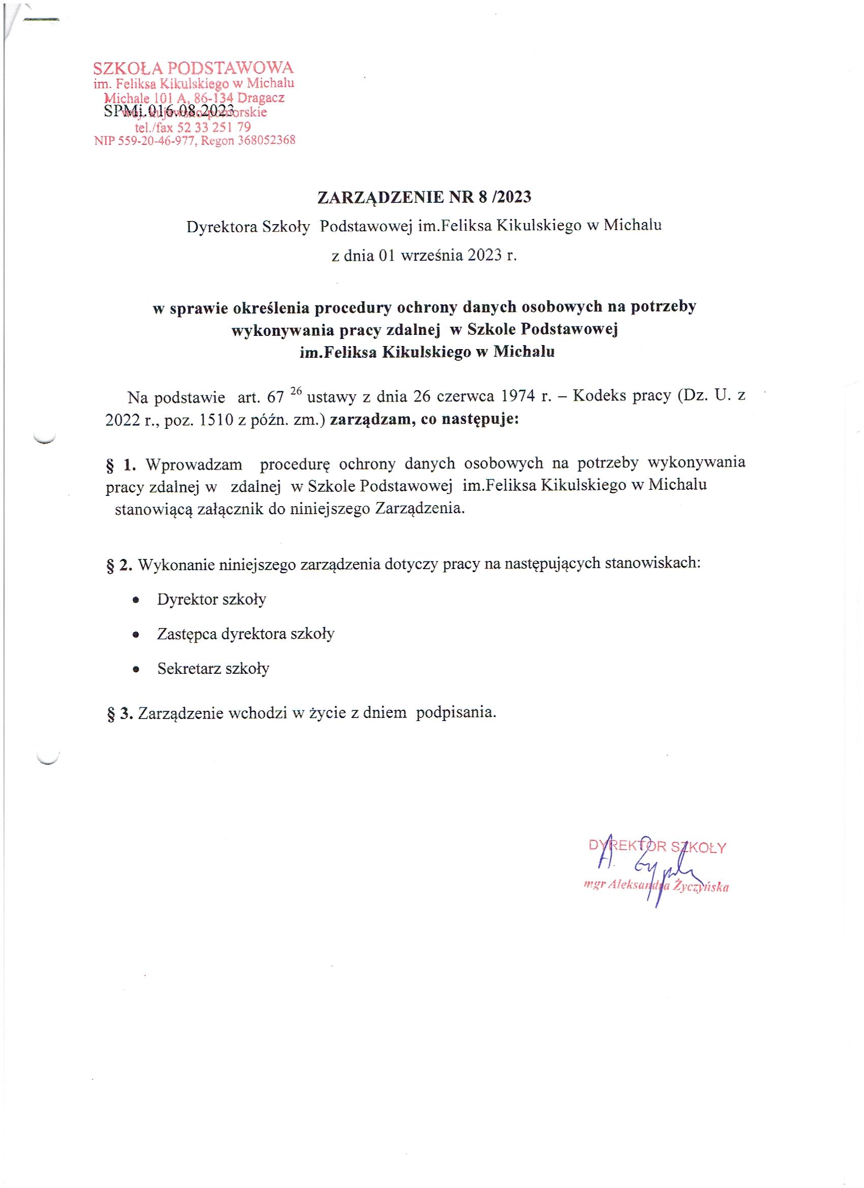 Aleksandra Życzyńska) - Dodanie załącznika [zarzadzenie_nr_8_001.jpg] do dokumentu. (Dokument nieopublikowany)