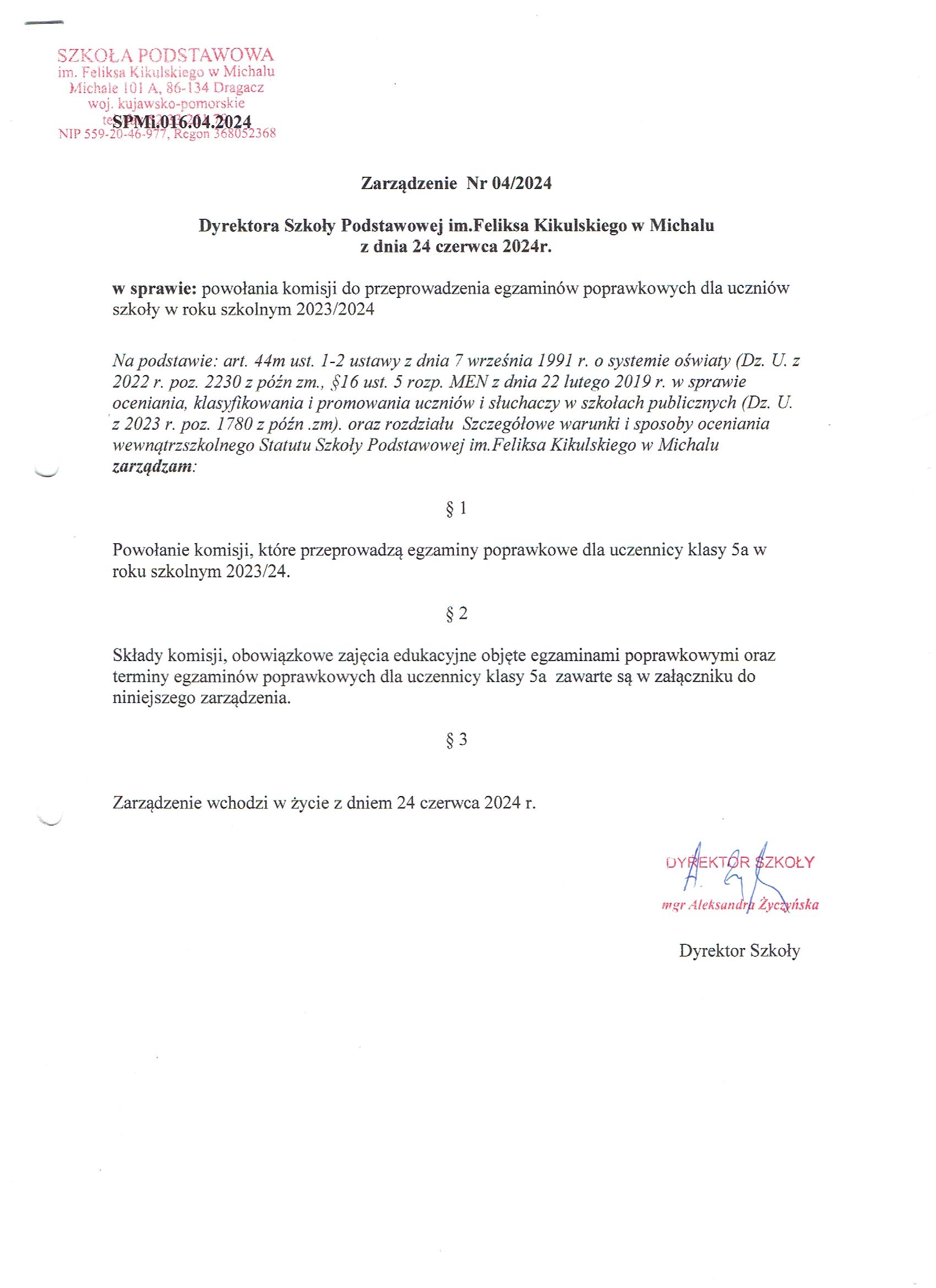 Aleksandra Życzyńska) - Dodanie załącznika [zarzadzenie_nr_4_001.jpg] do dokumentu. (Dokument nieopublikowany)