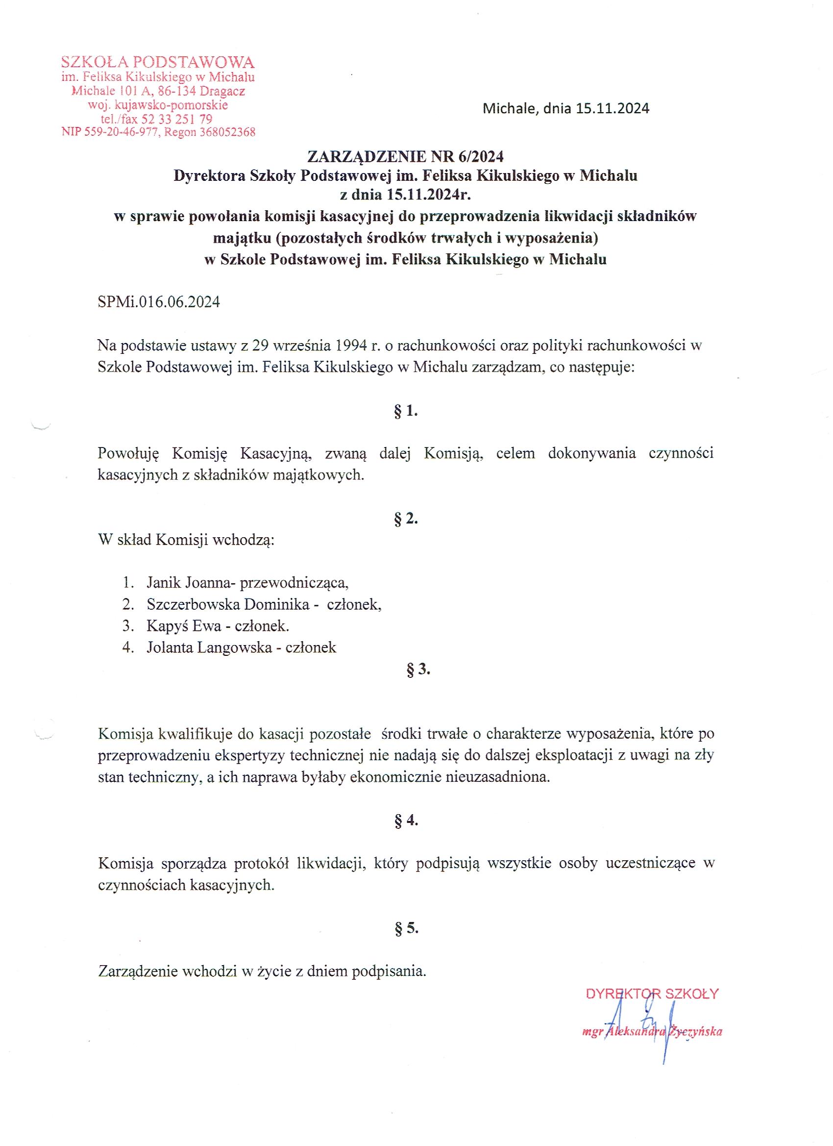 Aleksandra Życzyńska) - Dodanie załącznika [zarzadzenie_nr_6_001.jpg] do dokumentu. (Dokument nieopublikowany)